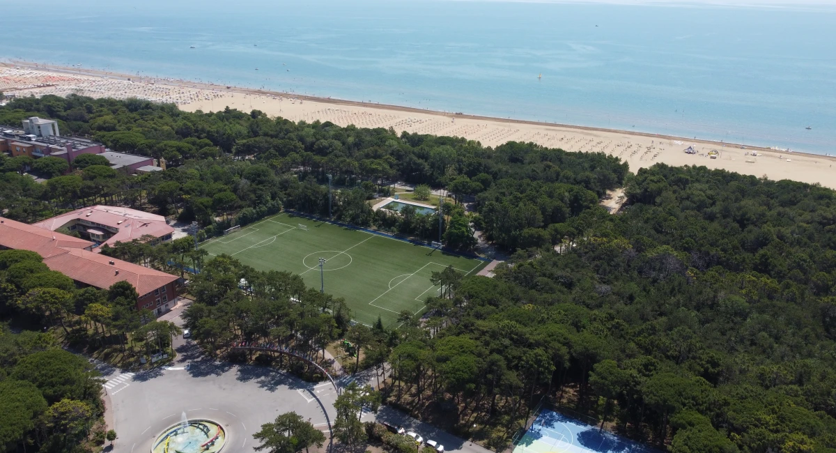 „Au Bella Italia Village Resort, en plus de l'entraînement quotidien, vous trouverez plusieurs possibilités de loisirs et de détente. L'établissement est plongé dans une forêt de 60 hectares et à quelques pas seulement d'une plage de sable fin. Le Bella Italia Village est le lieu de vacances idéal pour les sportifs, avec de nombreuses installations sportives en intérieur et en extérieur : stades multi-sports, terrains de sport (football, tennis, football à cinq, basket-ball et volley-ball), sportes de plages, parc aquatique, piscines, et bien plus encore.“